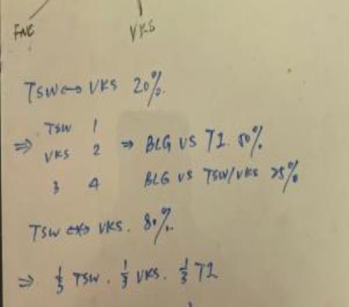 则BLG:遇到T1概率为36.7%,遇到TSW/VKS概率各为31.7%